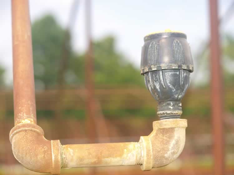 Iron deposits on irrigation heads from water |